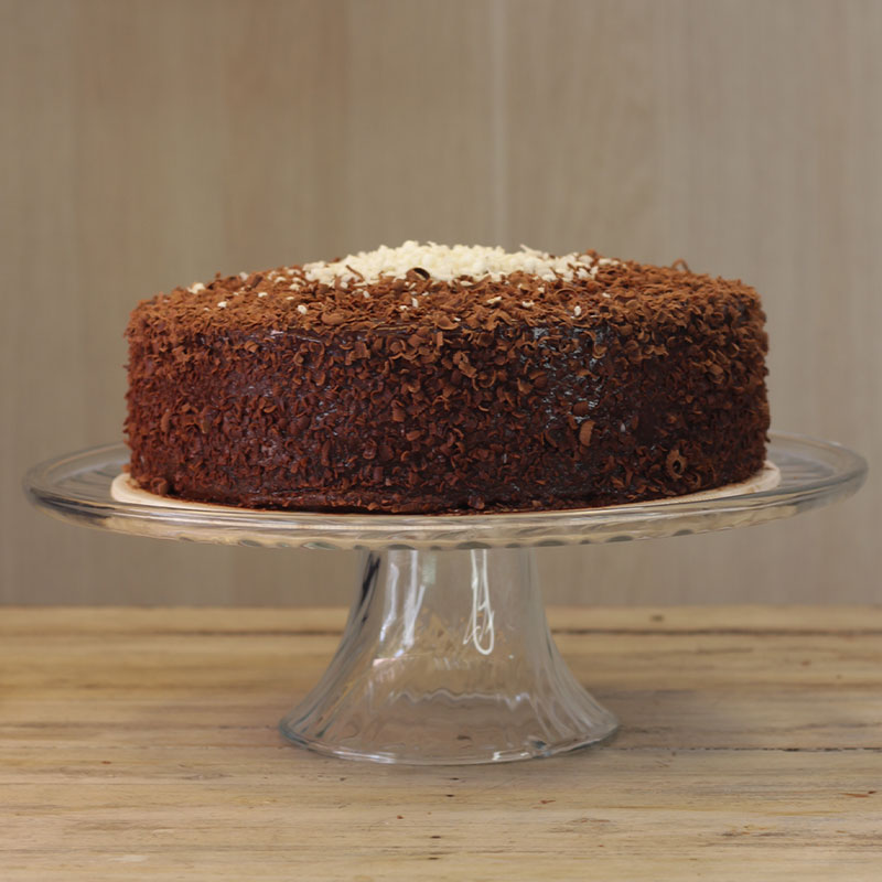 Torta de chocolate con cubierta de chocolate y arequipe.